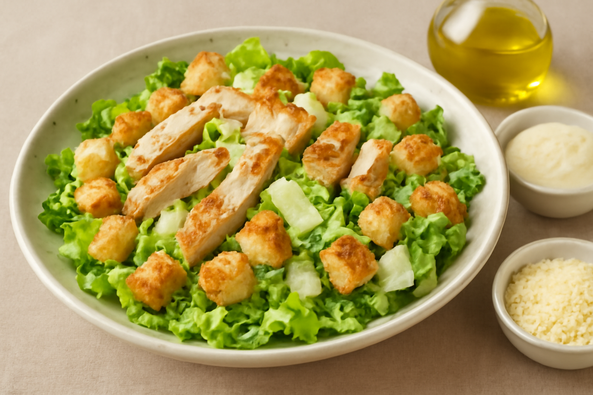 Салат "Цезарь" — это одно из самых популярных и любимых блюд, которое можно приготовить как на обед, так и на ужин. Этот салат сочетает в себе хрустящие крутоны, свежие листья салата, сочную курицу и, конечно, знаменитый соус "Цезарь". Сегодня мы поделимся рецептом, который позволит вам приготовить этот вкусный салат в домашних условиях! Салат "Цезарь" с курицей — это отличный выбор для легкого обеда или ужина. Его можно приготовить за 20-30 минут, а результат всегда будет потрясающим! Наслаждайтесь этим блюдом и радуйте своих близких! 🥳 Надеюсь, вам понравится этот рецепт! Если хотите, могу предложить другие варианты салатов. 😊