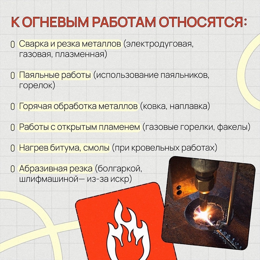 🔥😱 Одна из самых популярных причин пожаров — нарушение правил пожарной безопасности при проведении огневых работ