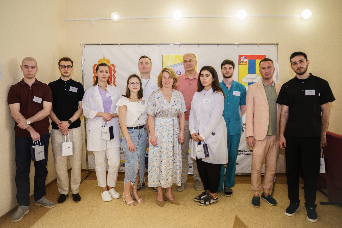 Встреча со студентами-практикантами медицинских вузов из разных регионов России состоялась в формате «Здравчаса» В медицинских учреждениях округа проходят практику 35 студентов. Каждый из них работает с современным оборудованием, познаёт новые грани будущей профессии. И во время очередного «Здравчаса» обсудили перспективы стажировки студентов на базе домодедовской больницы, рассказали о том, в каких условиях трудятся будущие врачи. На встрече присутствовали глава городского округа, секретарь местного отделения Всероссийской политической партии «Единая Россия» Евгения Хрусталева, главный врач ГБУЗ МО «Домодедовская больница» заслуженный врач РФ Андрей Осипов, заместитель главы округа Юлия Терещенко и заместитель главного врача больницы Дмитрий Мальченко, а также восемь практикантов из астраханского, владикавказского и саратовского медицинских вузов. В начале встречи Андрей Осипов рассказал о том, как проходит практика студентов, какие навыки и знания они получают. Отметим, домодедовская