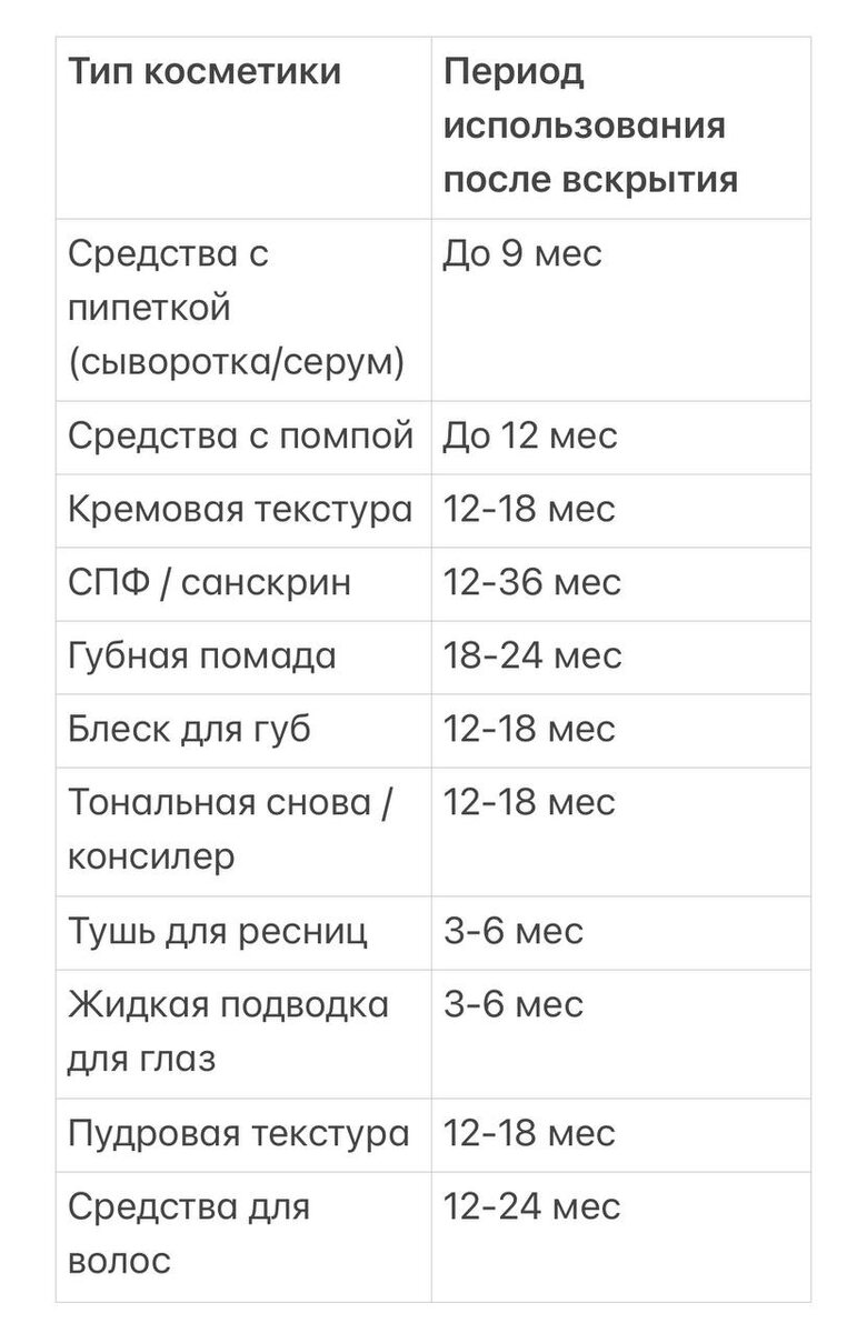 В конечном итоге, все имеет определённый срок годности, и обычно в течение 2-х лет, а иногда и 3-х месяцев любое косметическое средство становится непригодным. Конечно же нам хочется использовать любимое косметическое средство до последней капли, особенно если оно вышло в копеечку. Однако срок применения некоторой косметики может быть короче, чем мы думаем. 🧴Обычно, срок использования продуктов, указанный на упаковке, относится к косметике после вскрытия упаковки и распечатывания. Знак PAO на упаковке означает рекомендуемый период использования продукта после вскрытия - Period After Opening. Часто на упаковке косметики указывается число и буква М, означающие количество месяцев в течение которого после вскрытия необходимо использовать продукт, а после утилизировать. Что же делать с запечатанным, не вскрытым кремом, который залежался на полке пару лет? Можно ли его ещё использовать? Он ведь все-таки ещё новый, запечатанный… 🤔 🧴В общем, срок годности не вскрытых, плотно запечат