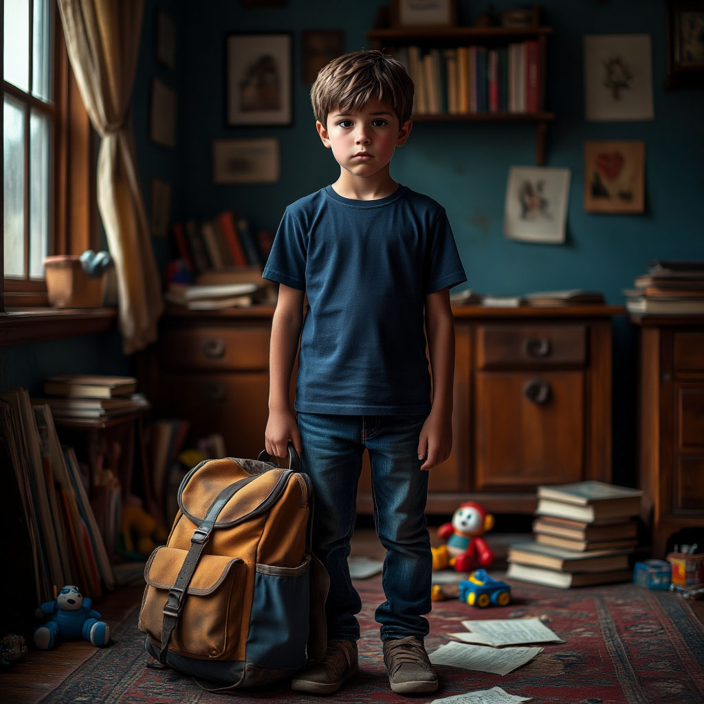 Мальчик молча наблюдал, как мама перекладывает его вещи.
