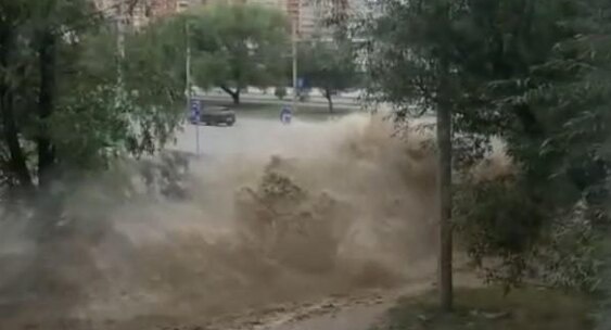 В центре Челябинска на перекрестке сквозь асфальт забил водяной фонтан