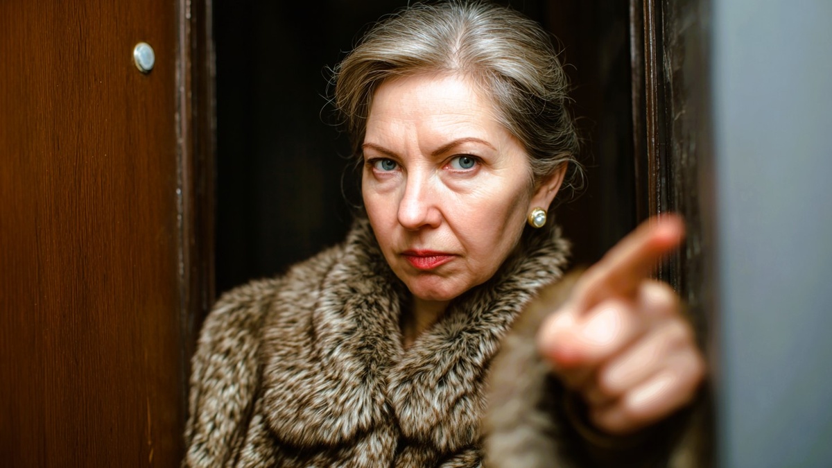 Голос женщины в дорогом пальто звучал холодно и властно. За спиной незваной гостьи маячили две мужские фигуры — муж в строгом костюме с недовольным лицом и незнакомый мужчина с кожаной папкой документов под мышкой.