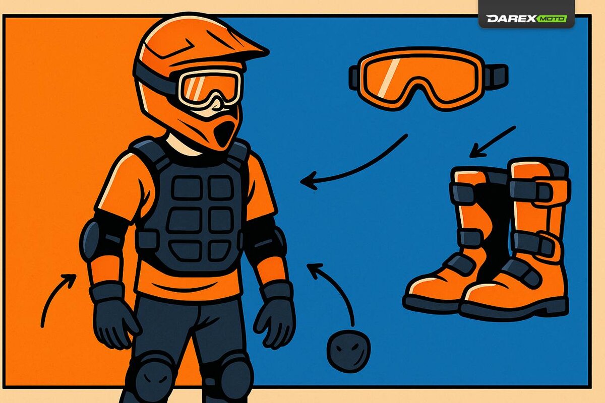 Экип для подростка — коротко и по делу Минимум: шлем (сертиф., ремешок застёгнут), мотоботы (не кроссовки), наколенники, перчатки, очки/маска. Лучше: черепаха/жилет + налокотники; шейный валик по росту. Перед выездом: ремешок шлема затянут; защита не болтается, шнурки спрятаны; колени/локти закрыты; ботинки застёгнуты; вода/аптечка/связь. Экономия без риска: не экономим на шлеме и ботинках; наколенники/жилет можно бюджетные (но новые). Нет экипа — переносим или берём в аренду. Нужна подборка по росту/бюджету? Пишите в комментах. Цель — больше подростков в эндуро без травм и с кайфом. 🏁
