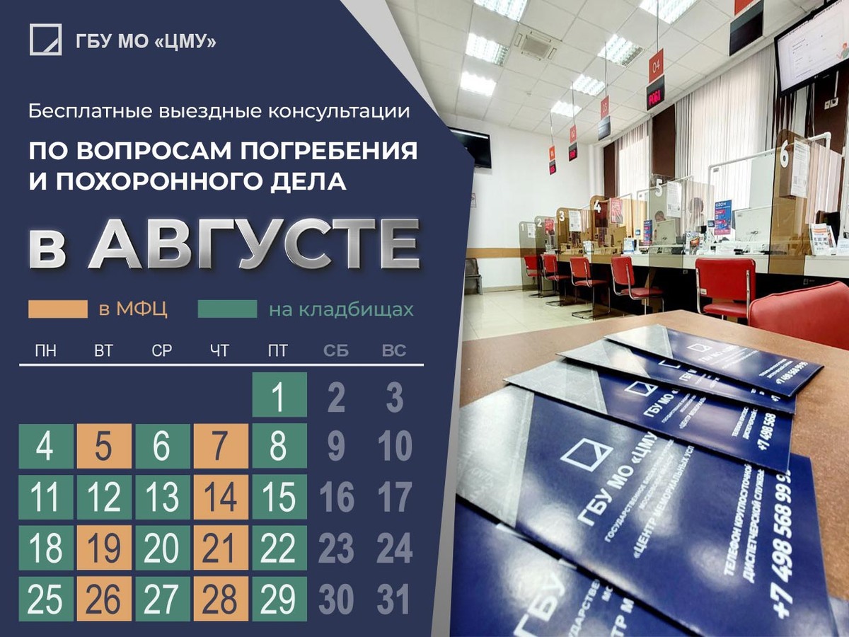 Воспользуйтесь бесплатной консультацией на территории кладбищ Московской области, от специалистов ГБУ МО «Центр мемориальных услуг» и получите необходимую информацию по вопросам погребения и похоронного дела 01.08.2025 Кладбище "Старое городское", Московская обл., г.о. Коломна,