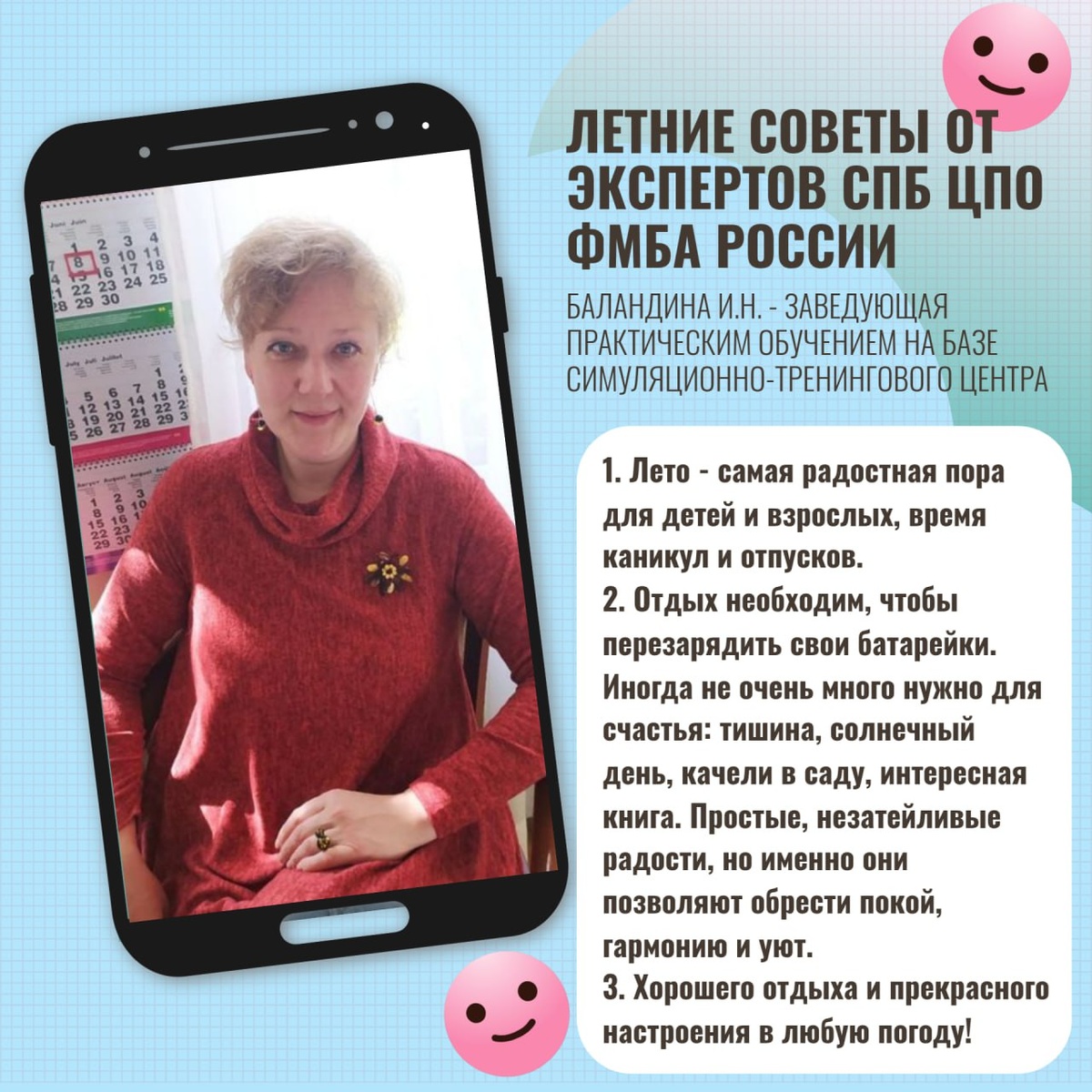 ✨В разгар летнего сезона коллектив ФГБОУ ДПО СПб ЦПО ФМБА России активно готовится к предстоящему учебному году. Наши преподаватели с теплотой вспоминают прошедший период обучения и спешат поделиться ценными рекомендациями с каждым слушателем.