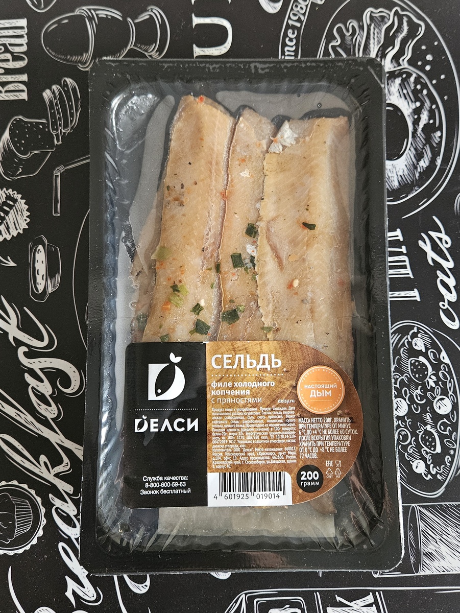 Филе сельди ДЕЛСИ холодного копчения с пряностями Производство: Красноярский край Вес: 200 гр Место покупки: Spar Цена: 199 руб Срок годности: 2 мес Не люблю простую селедку. Максимум могу иногда с луком в уксусе пару кусочков съесть. А тут в Spare брала пресерву для "шубы" (в салате ем))) и увидела это чудо вкуса. Ни разу не видела копченую, это для меня было прямо открытием! Взяла раз на пробу и теперь беру ее постоянно. Селедка - отвал бошки. Мои вкусовые сосочки счастливы! И я не шучу. Упаковка стандартная. Лоток, запаяный плотной пленкой, легко открывается. На пленке этикетка с названием продукта , а сквозь пленку на вас смотрит аппетитная филешечка с пряностями и зеленью и там нежно шепчет: - Возьми меня! Ну возьми меня! 😁Прониклись? А теперь ✔️СОСТАВ✔️. Сельдь тихоокеанская слабосоленая, соль, смесь пряностей. Шут его знает, что там за смесь пряностей, но она вызывает стойкое привыкание 😂 с первого раза. В упаковке 200 гр, этого достаточно, чтобы натрескаться за
