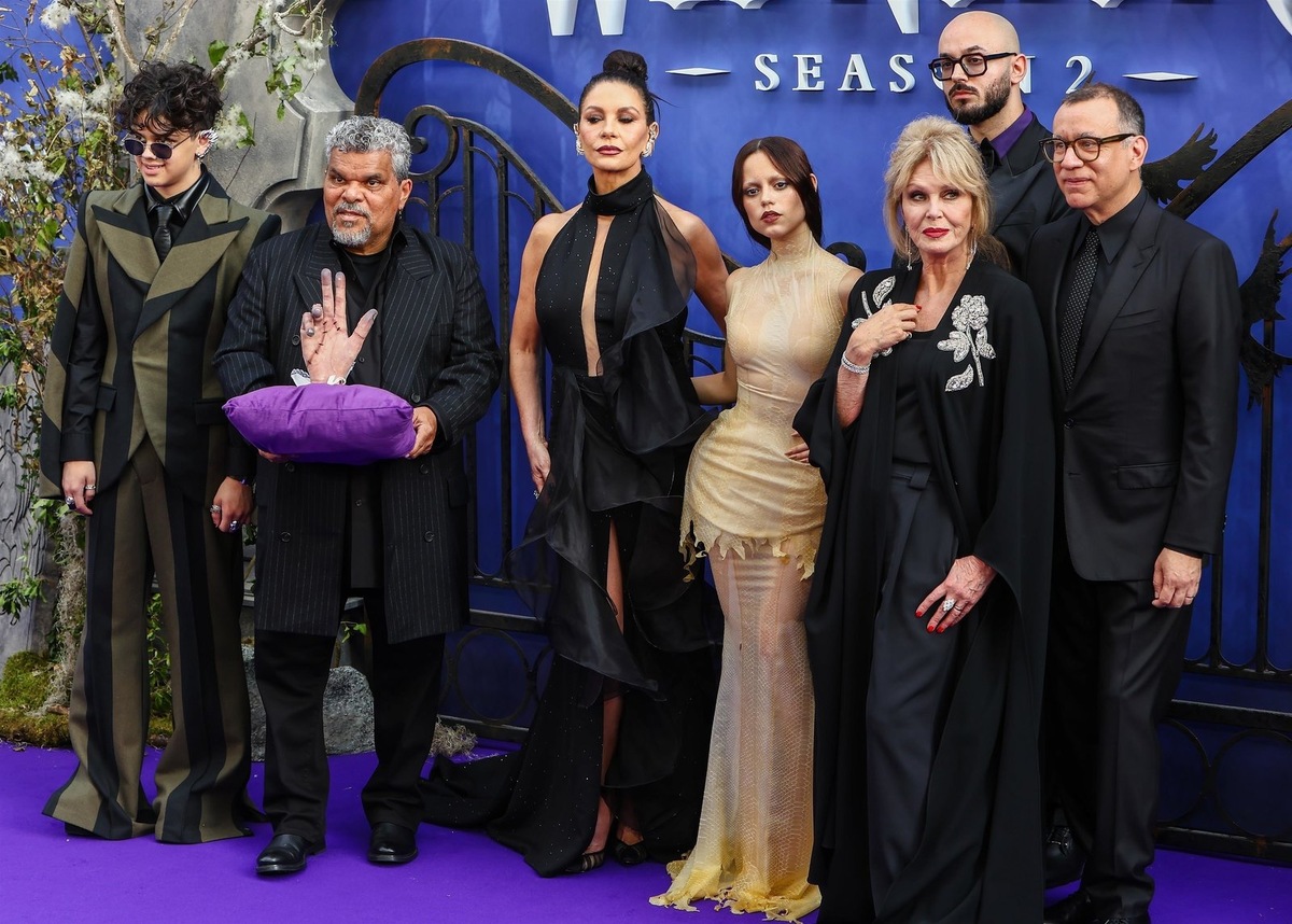 В Центральном зале Вестминстера в Лондоне состоялась премьера второго сезона сериала «Уэнздей». Многосерийный фильм презентовали его создатели: режиссер Тим Бертон, а также актеры Дженна Ортега, Кэтрин Зета-Джонс, Джоанна Ламли и другие. Для премьеры Дженна Ортега, исполнительница главной роли, выбрала белое полупрозрачное платье в пол с баской в области талии. Она заплела волосы в косу и сделала макияж в готическом стиле: обесцветила брови, подвела черным глаза и накрасила губы помадой с темно-винным оттенком. На мероприятии актрису поддержали ее родители. Кэтрин Зета-Джонс надела черное струящееся платье со шлейфом, открытой спиной, декольте и драпировками. Она собрала волосы в высокий пучок и сделала яркий макияж. Образ звезда дополнила массивными украшениями. Во второй части сериала продолжается история Уэнздей Аддамс в академии «Невермор». Героиня столкнется с новыми загадками, драматическими событиями, а также с новыми и старыми врагами. Премьера первой части второго сезона состо