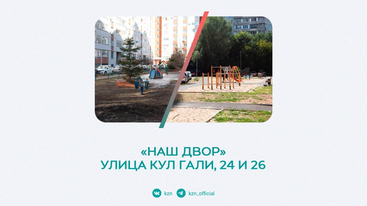 🏠 Как преобразился двор на Кул Гали По программе раиса Татарстана «Наш двор» здесь появилось спортивное оборудование и детская площадка. Впереди – установка столбов освещения и строительство контейнерных площадок, но изменения уже налицо 👆🏻 @kzn @avp_kazan Больше информации в нашей группе, переходите