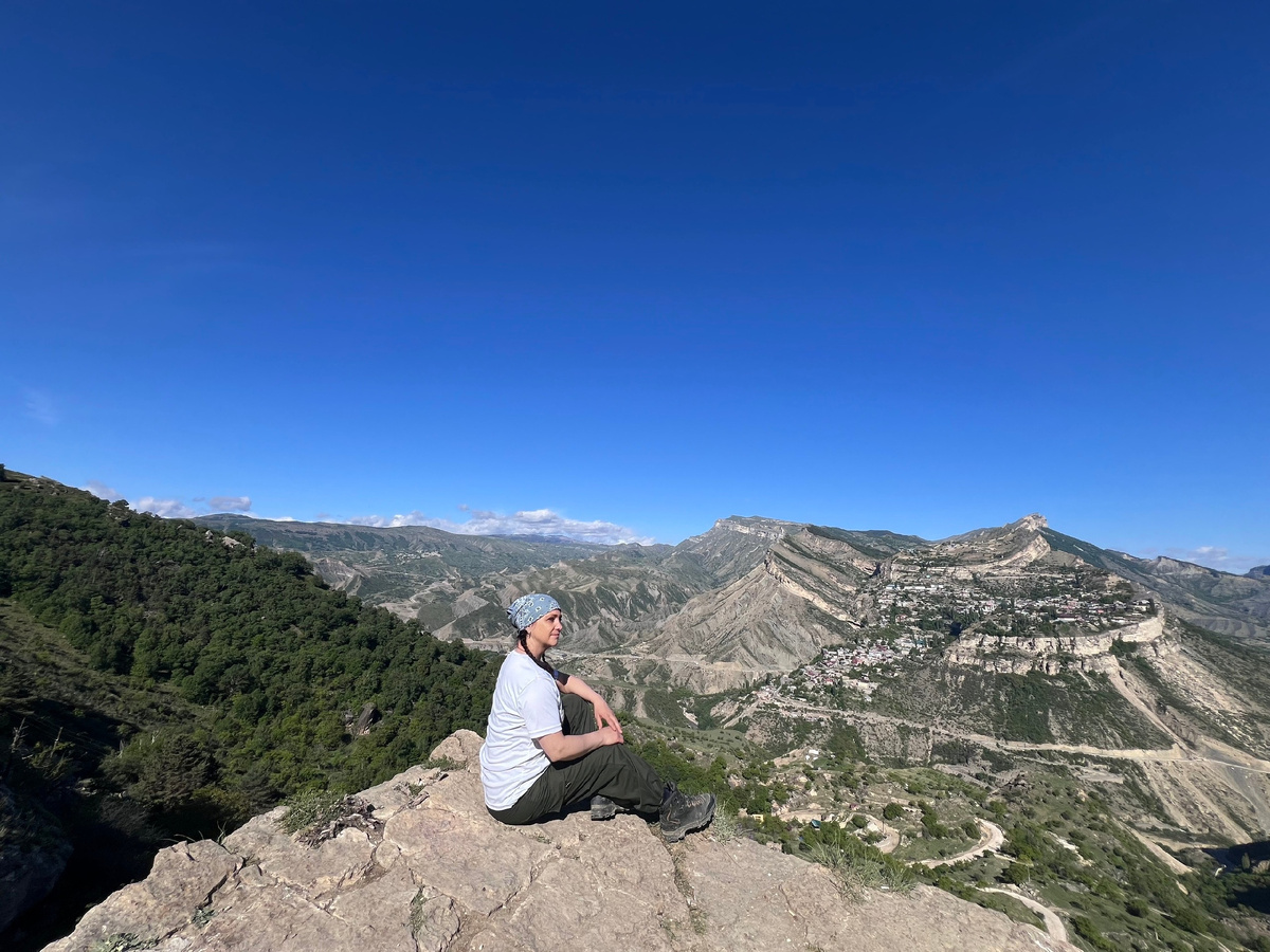 Я стояла, смотрела на далекие заснеженные вершины горного хребта, в солнечной дымке и думала: «Это же сам Кавказский хребет!»