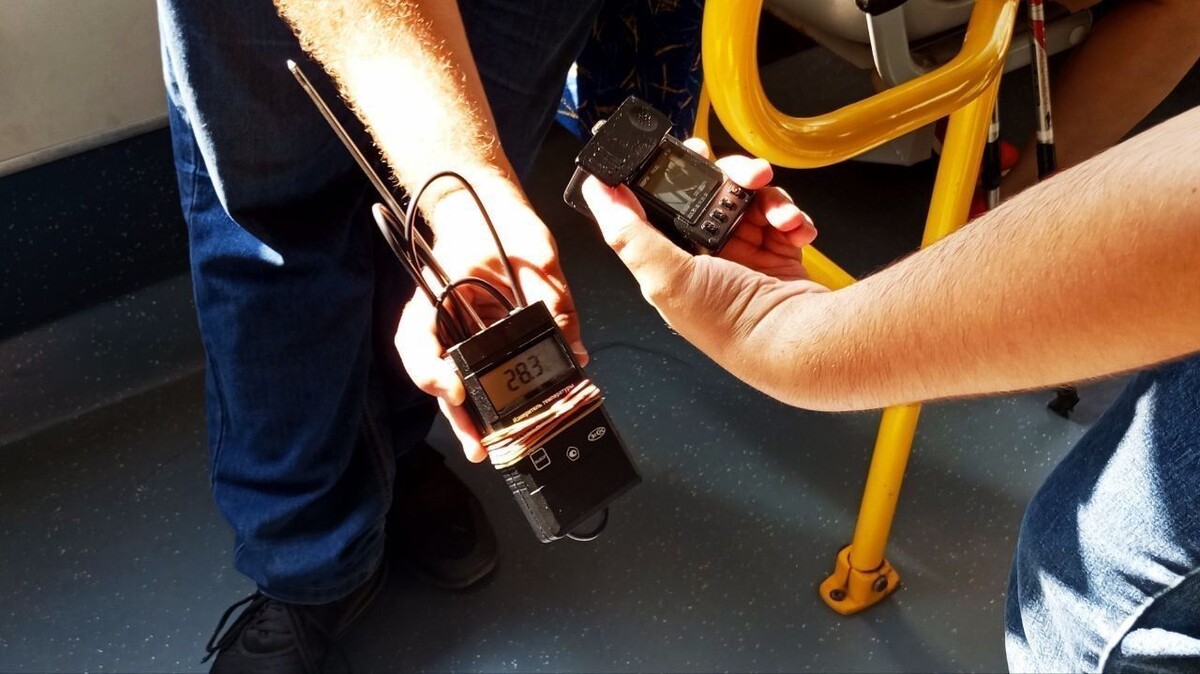На улице 32 градуса по Цельсию. А в салоне автобуса, троллейбуса или трамвая не выше 25 градусов… должно быть. На деле же бывает жарче, чем на улице. Старший контролер отдела линейного контроля «Организатора перевозок» Игорь Воронин рассказывал, что из рекордов недавно фиксировал температуру в салоне автобуса в 35,9 градусов. «В таком случае составляется акт о нарушении температурного режима в салоне», – добавил Воронин. Термометр с собой Корреспондент «Петербургского дневника», проехавшись на нескольких автобусах разных маршрутов с контролерами линейного контроля, нового рекорда не увидел, только значения в диапазоне от 20,1 до 32,5. Смотрели не на цифры на табло в салоне автобуса. «Термометры в салоне автобуса не проверены, и они могут показывать температуру некорректно. Там датчик находится под потолком», – рассказал начальник управления контроля городского и пригородного пассажирского транспорта «Организатор перевозок» Алексей Коршунов. Контролеры фиксируют климат в салоне автобуса