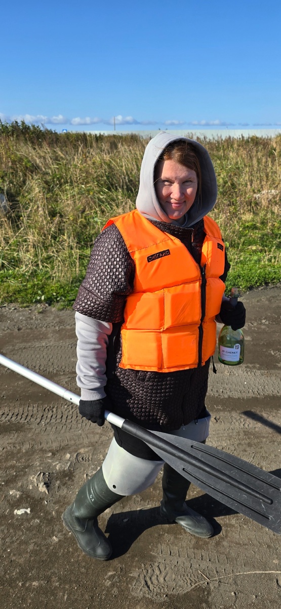 На Сахалине есть интересное озеро Буссэ, хотя технически - это лагуна. Овальное по форме, водное зеркало достигает площади 40 квадратных километров, питается двумя речками и кучей ручьёв, но также имеет соединение с открытым морем, благодаря чему подвержено приливам и отливам, а вода в нём кристально прозрачная и слегка солоноватая. Глубина в озере максимум 4,5 метра, а во многих местах - всего по щиколотку. Озеро Буссэ известно тем, что там естественным процессом живут устрицы, гребешки, трубачи и другие морские животные, не говоря о рыбе. На озеро мы приехали в составе небольшой группы, экскурсию купили через сайт местного тур.агенства "Друзья Походники". Не первый раз с ними катаюсь, очень рекомендую! Ну так вот, про экскурсию: тебя привозят из Южно-Сахалинска на микроавтобусе на берег озера, где у туроператора имеется база. Тебе выдают огромные рыбацкие сапоги по самые... (пояс), жилет и весло!)) С собой можно взять привезенное из города вино, проссекко, другие напитки (в нашей гр