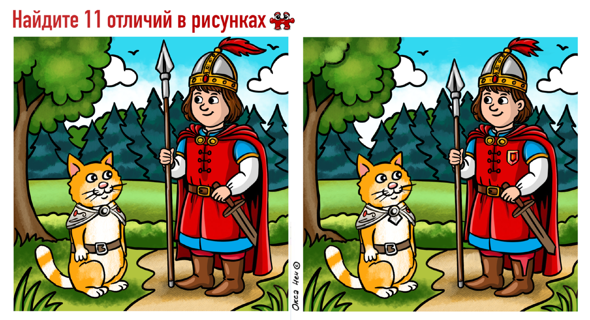 Богатырь-кот к походу готов! Отличия сегодня вновь спрятаны в сказочном сюжете. Кто найдет все 11 - молодец! Горизонтальный тест: Вертикальный тест: Ответ: