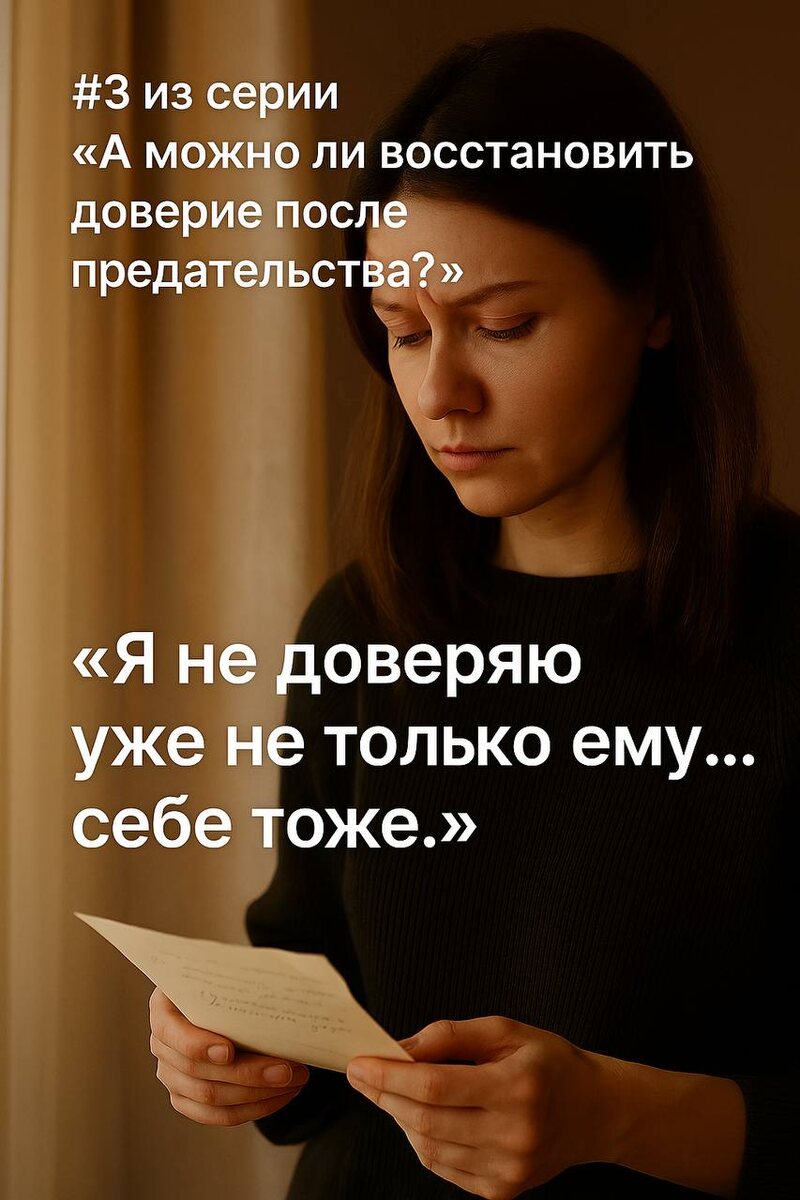 #3 из серии «А можно ли восстановить доверие после предательства?» 🧷 «Я не доверяю уже не только ему… себе тоже.» Он лгал. А я — верила. Теперь боль не только от него, но и от того, что я не услышала себя. Но доверие к себе — не утрачено. Оно может вернуться. 🌱 Задание: Вспомни момент, когда знала, но не поверила. Что бы сказала себе тогда — с добротой?