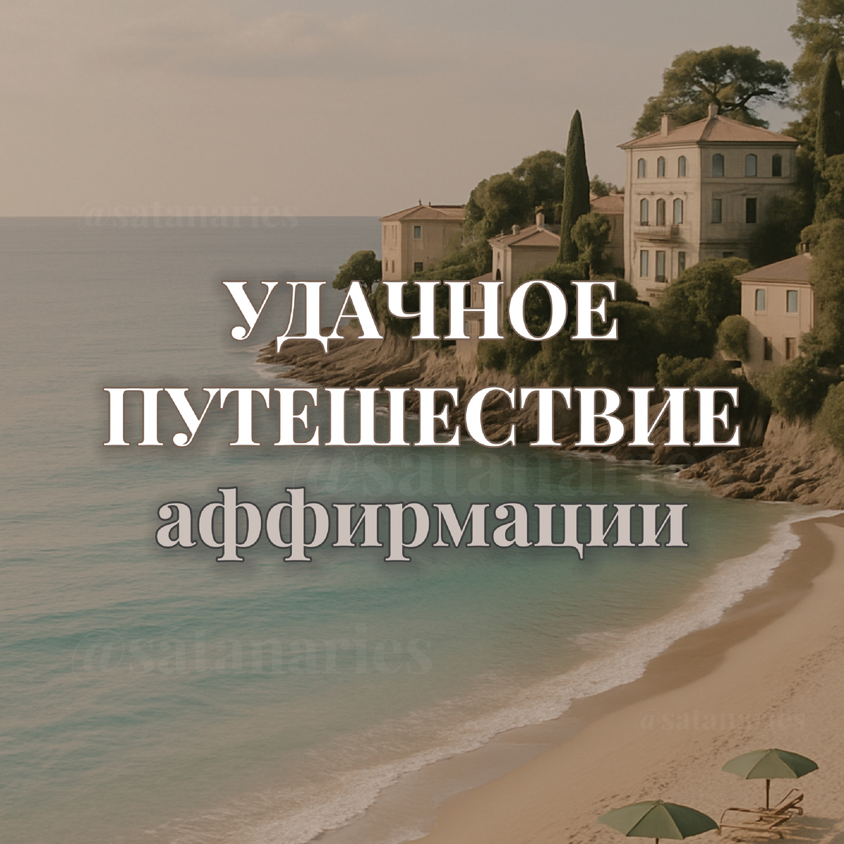 •Мой путь лёгкий, безопасный и наполнен приятными открытиями •Я в потоке, всё складывается так, как нужно мне •Я заслуживаю отдых, вдохновение и новые впечатления •Я открыта(открыт) миру, и мир отвечает мне добром •Все пересадки, перелёты и трансферы проходят вовремя и комфортно •Я доверяю жизни, она заботится обо мне на каждом этапе пути •Мои вещи в порядке, документы при мне, всё идёт по плану •Я чувствую себя в безопасности в любой точке мира •Я позволяю себе наслаждаться каждым моментом здесь и сейчас •Путешествие приносит мне радость, вдохновение и наполнение •Я достойна(достоин) путешествовать туда, куда зовёт моё сердце •Моя мечта становится реальностью, шаг за шагом, с лёгкостью и доверием •Мир открыт для меня, и я открыта(открыт) миру •Я позволяю себе роскошь наслаждаться тем, что действительно люблю •Я выбираю места, которые наполняют меня вдохновением, красотой и тишиной •Деньги, время и возможности приходят ко мне, когда я иду за мечтой •Я вижу, как путешествие мечты легко