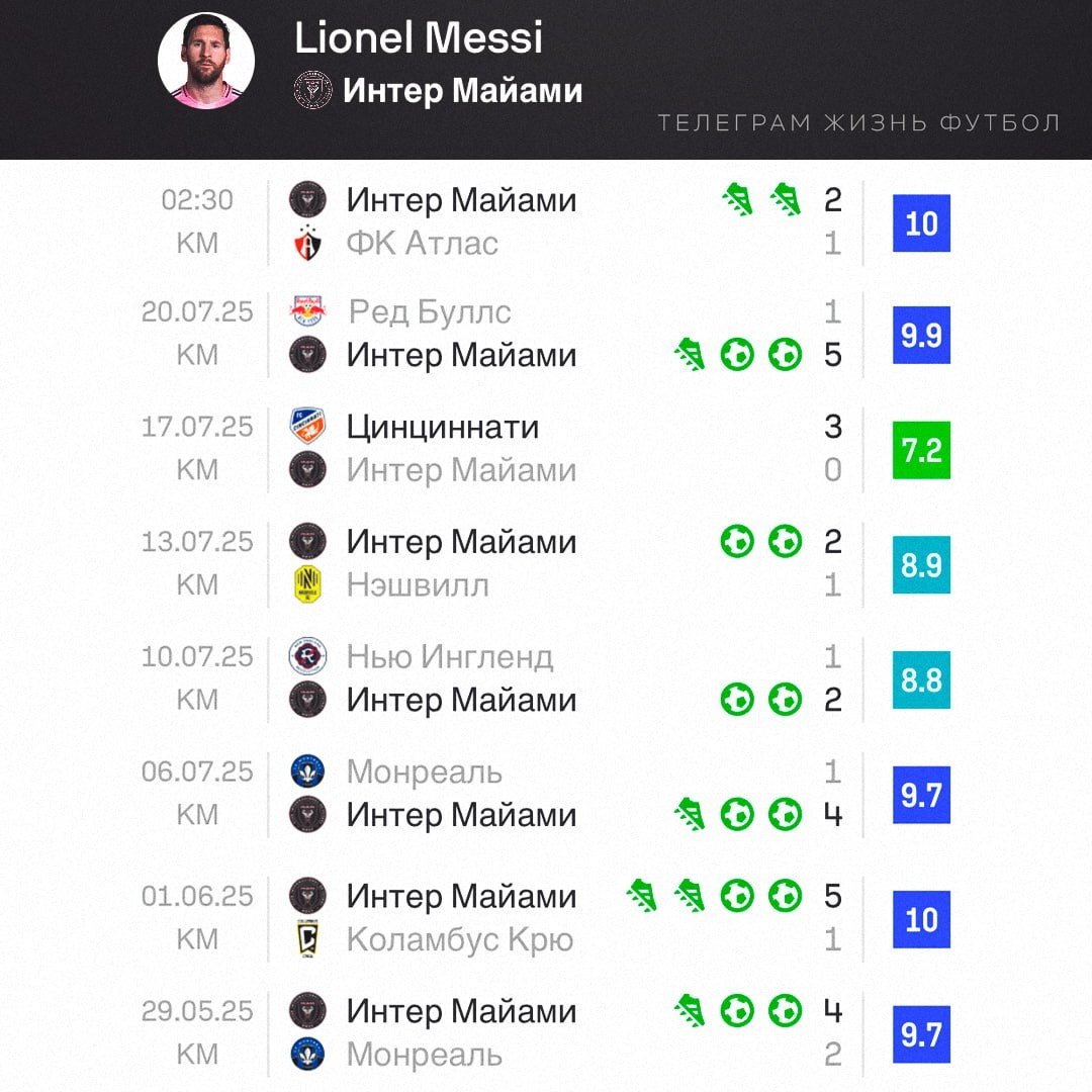 В последних 8 матчах в рамках американских турниров, Месси показал что ещё может устрашать соперников. Средняя оценка игрока за 8 матчей равна 7,4. Подписывайтесть чтобы получать актуальные футбольные новости