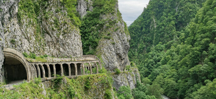 Ущелье, образование которого началось за счёт поднятия известкового пласта порядка 20 миллионов лет назад. Горная достопримечательность, раскинувшаяся посреди широколиственных, буковых и пихтовых лесов. Место, где была обнаружена стоянка древних людей. Есть множество версий трактования названия ущелья. Согласно самым распространённым из них, в переводе с абхазского языка Ахцу – южный склон, горное место, острая скала, клык и горная вершина. В переводе с абазинского языка название можно интерпретировать как «место, где ударила молния». Кстати, по одной из легенд, пещера или так называемый горный проход в ущелье был образован в следствии удара молнии и мощного раскалывания скалы. На самом деле проход сформирован за счёт стремительного потока реки Мзымта, которой и помешал известняковый пласт. Длина этого прохода достигает 3 км, а ширина колеблется от 20 до 30 метров. Красота окрестности ущелья поражает умы даже самых заядлых путешественников. Ведь здесь есть и головокружительные виды с