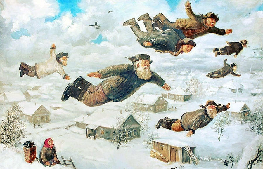 Мимо пролетело облако, похожее на мыльную пену, и Илья Петрович вспомнил про баню в воскресный день. Увидел орла, летевшего в поисках добычи, и полетел следом за ним. Набрал высоту, на которой летают вертолёты, и только после этого оглянулся назад...