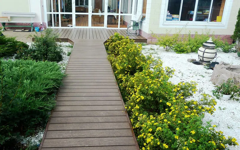 - Для семей с детьми и животными композитная дорожка — спасение: никаких заноз и скользких досок даже после ливня.