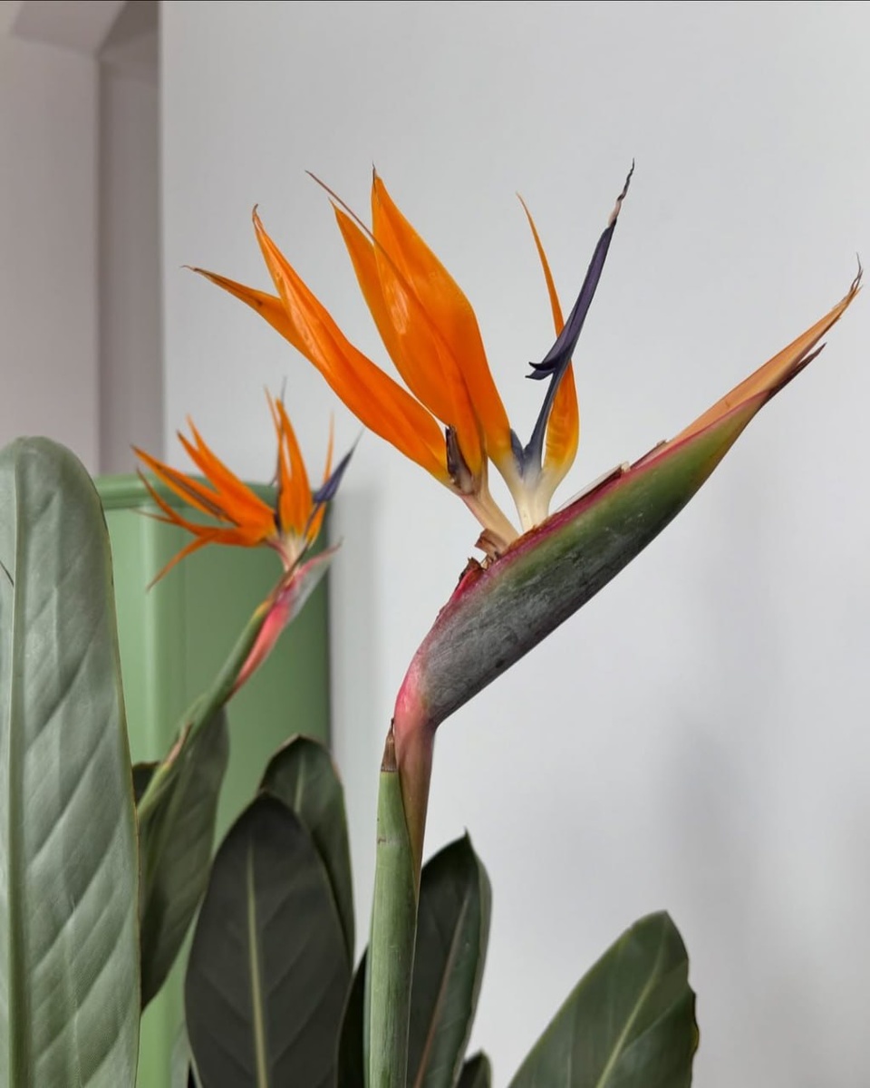 🌸 Стрелиция королевская (или райская птица, науч. Strelitzia reginae) — тропическое растение из Южной Африки, известное своими восхитительными цветами, которые напоминают ярких тропических птиц с экзотическими клювами и перьями. Цвести может уже с 4-х летнего возраста. Свет: Любит свет — идеально поставить на самое солнечное место. Но полуденные солнечные лучи лучше избегать. Оптимально - восточное/ западное окно. Температура: Оптимально около 20-25°C. Зимой не ниже 12°C, иначе эта королева может надуться и отказаться цвести. Полив: Между поливами почве нужно дать просохнуть в верхней трети горшка. Без застоя воды — стрелиция не любит мокрые ноги. Влажность: Влажность воздуха не критична. Очень полезен теплый душ раз в неделю или две. Королева требует «SPA-процедур». Подкормка: Весной и летом — регулярно, специальным удобрением для цветущих растений, чтобы цветение было эффектным, а листья — яркими.
