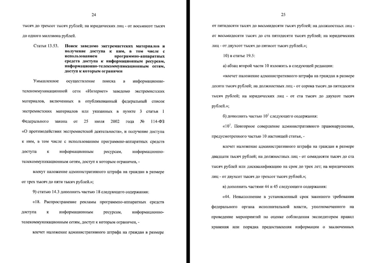Президент России Владимир Путин подписал закон, который вводит административную ответственность за ряд нарушений, связанных с интернет-доступом, VPN и экстремистскими материалами. Документ опубликован на официальном портале правовых актов. Теперь за умышленный поиск и доступ к экстремистским материалам, включённым в федеральный реестр, грозит штраф от 3 до 5 тысяч рублей. Речь идёт именно о материалах, признанных таковыми судом, что снимает опасения по поводу размытых формулировок в изначальных версиях законопроекта. Также вводятся следующие штрафы: — за рекламу VPN и других обходных средств: • гражданам — от 50 до 80 тыс. рублей • должностным лицам — от 80 до 150 тыс. • юрлицам — от 200 до 500 тыс. — за незаконную передачу абонентского номера: • физлицам — от 30 до 50 тыс. • ИП — от 50 до 100 тыс. • юрлицам — от 100 до 200 тыс. — за передачу логинов и паролей от интернет-сервисов: • гражданам — от 30 до 50 тыс. • ИП — от 50 до 100 тыс. • юрлицам — от 100 до 200