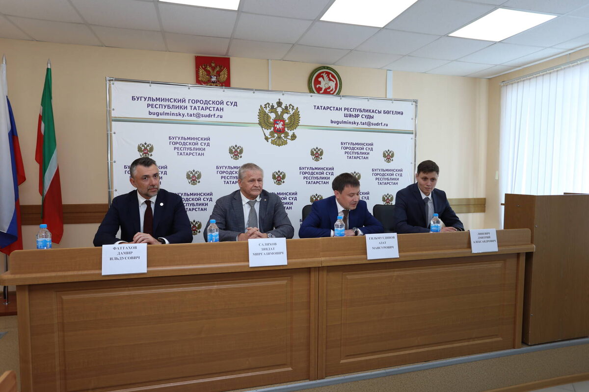 Сегодня председатель Верховного суда РТ Азат Гильмутдинов представил коллективу Бугульминского горсуда нового руководителя. Им стал Дмитрий Линевич. Об этом «Татар-информу» сообщили в пресс-службе администрации района. На церемонии представления присутствовали руководитель Управления Судебного департамента в РТ Зявдат Салихов, руководитель Исполнительного комитета района Дамир Фаттахов, а также руководители смежных ведомств. Представляя нового руководителя, Азат Гильмутдинов отметил его успехи, профессиональные качества и пожелал успехов в ответственном деле служения правосудию. «Взаимодействие и объединение усилий независимых ветвей власти необходимы для того, чтобы наша жизнь менялась и все приоритетные задачи на благо нашего района мы могли реализовывать на местах», – сказал глава исполкома Дамир Фаттахов. Новый председатель суда поблагодарил за оказанное доверие и заверил, что приложит все усилия для качественного отправления правосудия. Фото: пресс-служба администрации Бугульминск