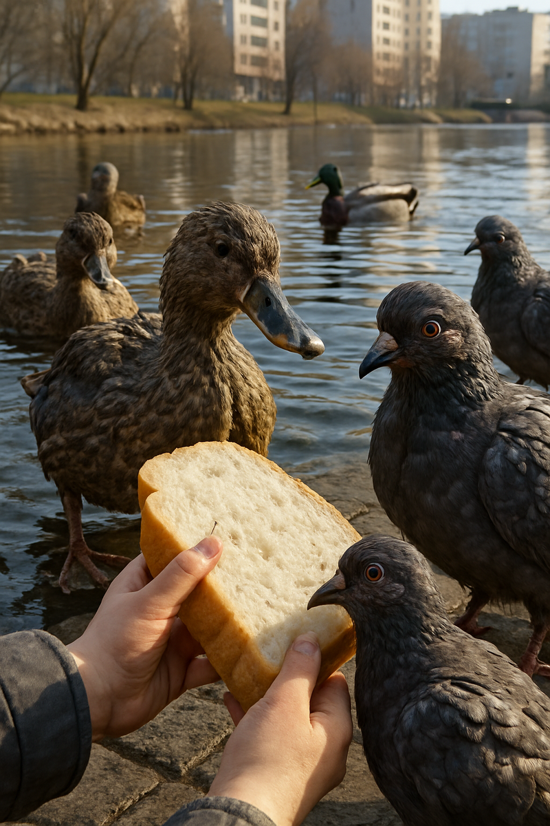 Многим из нас знакомо удовольствие покормить уток на пруду или воробьёв у подъезда. Но добрая традиция может обернуться печальными последствиями для птиц — если подкармливать их тем, что вредно или даже опасно. Давайте разберём, чем категорически нельзя кормить пернатых жителей города, а чем действительно можно помочь. Есть продукты, которые нельзя давать ни уткам, ни голубям, ни воробьям, ни синицам: Кормить городских птиц орнитологи советуют только в холодное время года, когда естественного корма мало — с ноября до весны. Летом и осенью большинство видов легко находят пищу: насекомых, семена, ягоды. Уток не следует кормить в период, когда вода открыта и птицы могут добывать корм самостоятельно. Весной и осенью прикорм может нарушить миграционные циклы, задерживая водоплавающих. Для уток и лебедей (на прудах): Для воробьёв, синиц, снегирей и других мелких птиц: Для голубей: Кормить городских птиц — это большая ответственность. Неправильный корм может нанести птицам больше вреда, ч