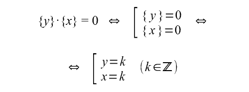 Построить на координатной плоскости график уравнения {y}·{x} = 0 (дробную часть числа t принято обозначать в фигурных скобках: {x}; функция f(t)={t} определена на всём множестве действительных чисел, область её значений – полуинтервал [0; 1), она является периодической функцией с периодом, равным 1). Проведём с уравнением равносильные преобразования с учётом того, что произведение равно нулю, если хотя бы один из множителей равен нулю, а дробная часть является нулевой для любого целого числа: Первое выражение в полученном в итоге объединении на координатной плоскости описывает бесконечную череду горизонтальных линий, расположенных на расстоянии 1 друг от друга. Второе уравнение объединения описывает серию вертикальных линий, где расстояние между соседними также составляет единицу. Получается, что графиком заданного в условии задачи уравнения будет служить объединение этих двух серий линий, образующих на координатной плоскости фигуру в виде бесконечной «сетки» с шагом 1. Другие задания,