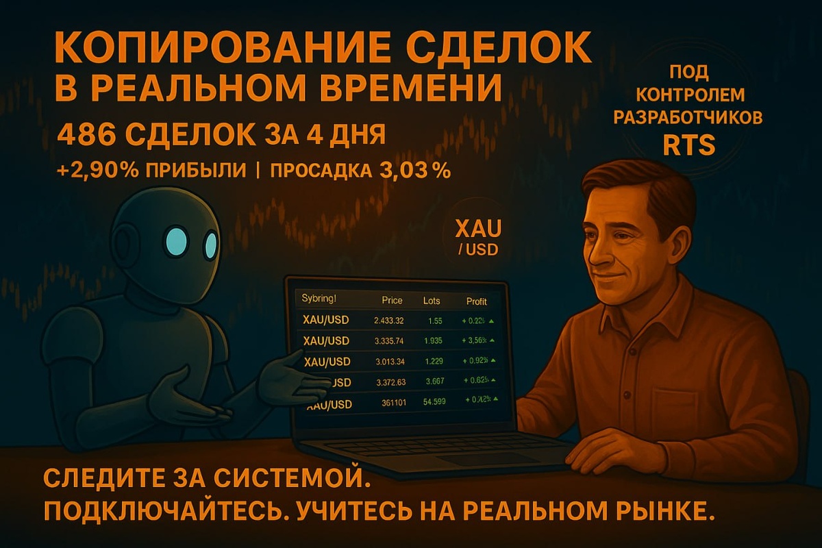 📡 RTS в копировании: вы просто наблюдаете — система работает За последние дни золото упало почти на $160 — от уровней $3 430 до минимума $3 270. 📉 Волатильность резко выросла: рынок реагирует на ожидание решения ФРС, инфляцию и доходности. 💬 В такой обстановке ручная торговля превращается в стресс. А RTS продолжает действовать спокойно — и теперь вы можете увидеть это вживую. 🧠 Что такое копирование сделок RTS? Вы подключаетесь к реальному счёту, где работает RTS под контролем разработчиков. Система ведёт торговлю: открывает, сопровождает и закрывает сделки — а вы наблюдаете за результатом в режиме реального времени. 📊 Факты за 4 торговых дня копирования (из 7 дней после запуска): ✔️ 486 сделок 📈 +2,90% к депозиту 📉 Максимальная просадка — 3,03% (в момент самого резкого снижения золота) RTS адаптировался к каждому рывку по структуре рынка. ❓ Хотите подключиться к копированию сделок? 📲 Всё просто: 1⃣. Перейдите в бота ➡️ https://t.me/RTSSaleBot 2⃣. Выберите пункт «Коп
