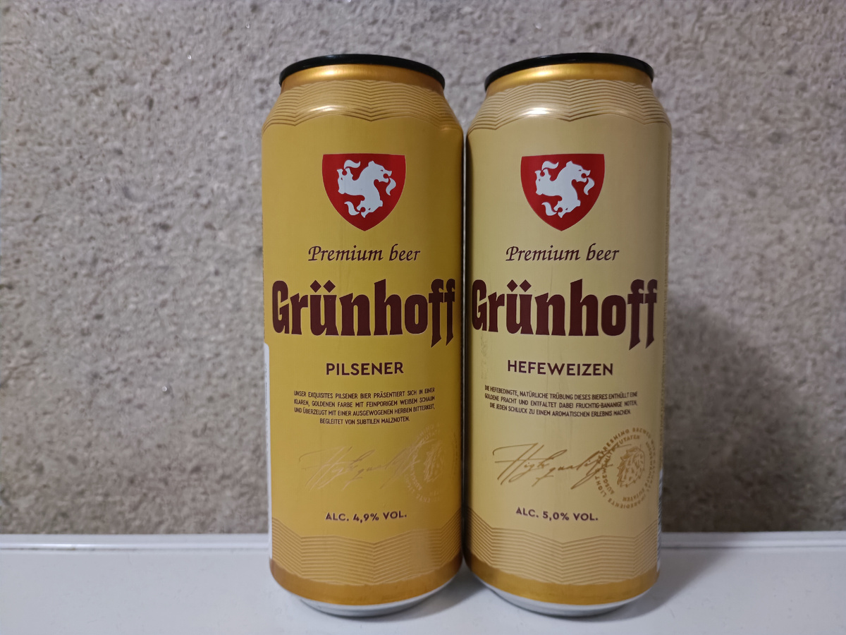 Сегодня у меня в бокале два классических немецких сорта, вайцен и пилснер. Это плод сотрудничества двух хорошо известных на нашем пивном рынке немецких пивоварен: Frankfurter и Feldschlochen. Пиво под маркой Grunhoff продаётся в сети Чижик по 130 р за банку объёмом 0.5 литра . Начнём с вайцена. Алк. 5 Внешний вид пива вполне классический для своего стиля, пена пышная, довольно стойкая. Аромат не очень яркий, дрожжевой, банан сильно вдалеке. На вкус же же жил довольно стандартная недорогая немецкая пшеничка, коей ещё недавно было валом в том же КБ. Питкая, водянистая, легкая кислинка, банан почти не чувствуется. Мне нравятся более плотные насыщенные вайцены, но там и ценник заметно выше 6/10 Переходим к пилснеру. Алк. 4.9 Опять же к внешнему виду пива вопросов нет, всё по классике. Аромат солодовый, земель едва уловим. На вкус это снова базовый недорогой пилснер. Водянистый, с не лучшим солодом, хмель присутствует, но быстро исчезает, на послевкусии остаётся только неприятный