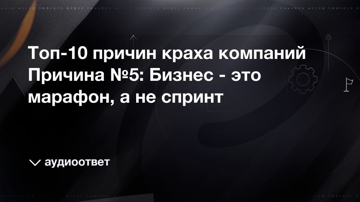 Подробный аудио-ответ вы можете прослушать в нашем телеграмм канале! Причина №5: Бизнес - это марафон, а не спринт 🔹Бизнес – не короткая дистанция, это долгий путь. Согласитесь, что когда мы смотрим на успешные компании, такие как «Пятерочка», «Тинькофф», Apple, Google, Facebook, мы видим наиболее яркие примеры. Мы видим их в момент успеха, когда они стали большими и известными, создающими классные продукты по всему миру. Однако, мы редко обращаем внимание на компании поменьше и менее публичные. Мы видим верхушку айсберга, не замечая длительный путь становления. Например, всем известные Wildberries и Ozon — этим компаниям уже по 20+ лет. Они долгое время были не такими яркими, и мы о них не знали. Когда думаем о создании бизнеса, часто меряем себя по успешным предпринимателям. Мы видим, как они живут красивой жизнью, путешествуют, имеют дорогие дома и машины. Кажется, что, запустив бизнес, можно быстро достичь того же уровня. Но до успеха многим из них пришлось идти длительное время.