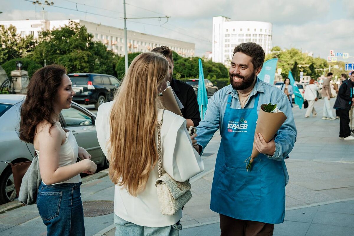 Что-то на милом: сегодня в центре Екатеринбурга прошел мастер-класс по сборке букетов. Участники самостоятельно создавали разные цветочные композиции и затем раздавали их всем желающим — среди «флористов» был и депутат Заксобрания Свердловской области Рант Краев. Краев рассказал «Моментам», что экспериментирует с творческими профессиями не впервые — до этого депутат пробовал себя в роли диджея. Подписаться 🔸 Обсудить