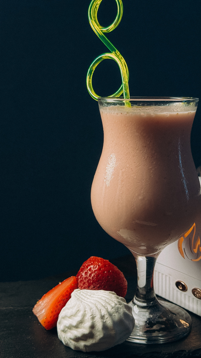 Зефир Наливаем 500 мл кефира . К нему замороженную клубнику . Затем зефир ( сладость регулируем зефиром - чем больше тем слаже ) . Пробиваем блендером до однородной массы . Ваш коктейль готов !