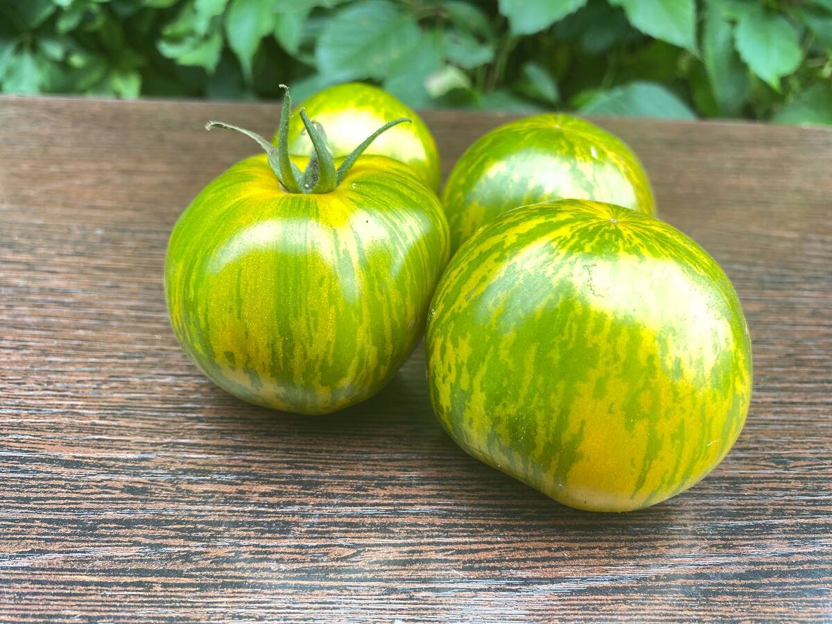 Начала созревать Люсинда. Окраска плодов оригинальная, на светло-желто-зеленом фоне, темно-зеленые полоски и штрихи. На фоне ажурной листвы смотрятся очень красиво.