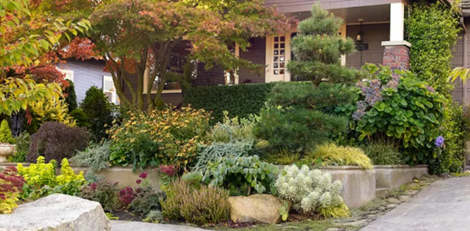 Всего несколько креативных штрихов могут освежить ландшафтный дизайн и клумбы перед домом и добавить привлекательности участку в любое время года. Прочитайте статью до конца и у вас появятся много идей для вдохновения. Причем независимо от того, хотите вы создать строгий или неформальный стиль, не требующий особого ухода, или просто хотите, чтобы ваш сад цвел буйством красок. Даже простые детали, такие как кормушка для птиц или растения, привлекающие бабочек, могут добавить очарования фасаду вашего дома. Вы также можете выбрать определённую тему, например, местные растения, и добавить такие популярные цветы как эхинацея и астра. Также травы, например, церсис калинолистный и калужницу луговую. Интересный факт, некоторые говорят, что эта трава пахнет как попкорн с маслом. Не забудьте позаботиться о том, как будет выглядеть ваш дом вечером, когда друзья и семья приедут на ужин или какое-нибудь особое мероприятие. Можно добавить гирлянды для подсветки деревьев или установить вдоль дорожек
