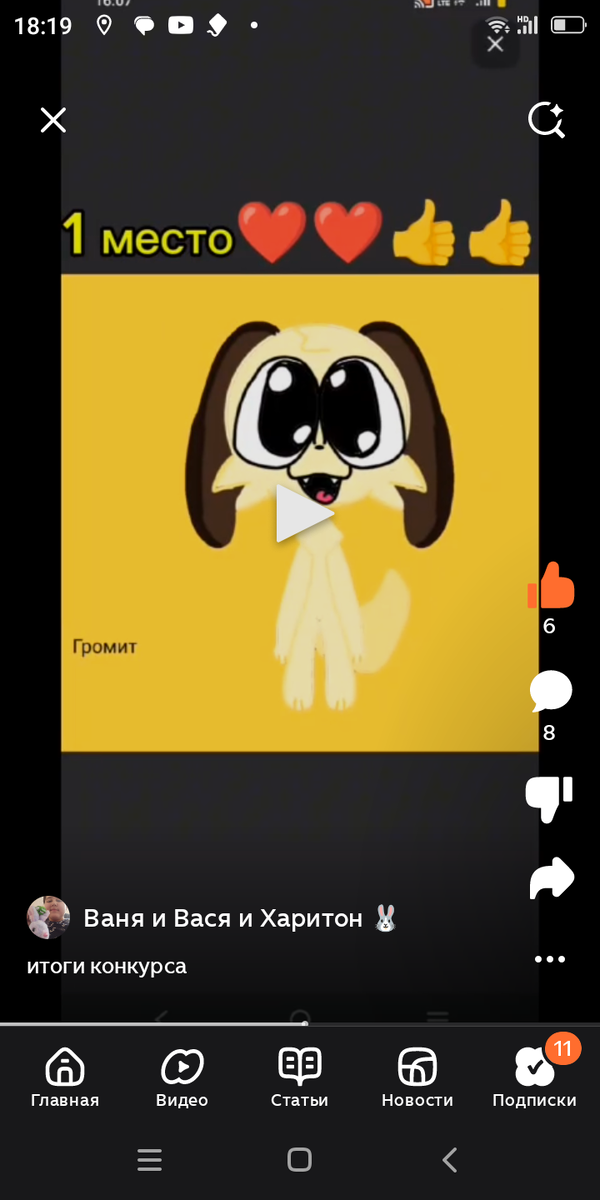 Ура!перовое место на канале Вани и Васи и Харитона!
