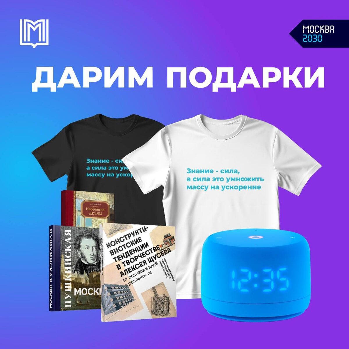 👍 Дарим подарки! В Гостином Дворе открывается уникальное интеллектуально-выставочное пространство «Бесконечное развитие с вечными ценностями» в рамках форума-фестиваля «Территория будущего. Москва 2030»! В честь этого мы приготовили специальные подарки, которые смогут вдохновить вас на учебу и саморазвитие: 1 место — умная колонка, книга, футболка 2 и 3 места — книга и футболка Для участия нужно: ➡️ Быть подписчиком каналов Московское образование и Москва 2030 ➡️ Поставить реакции на 3 последних поста ➡️ Нажать кнопку «Участвовать» под этим постом 7 августа с помощью бота выберем трёх счастливчиков! Подарки будут вручены победителям в Гостином дворе. Всем удачи!
