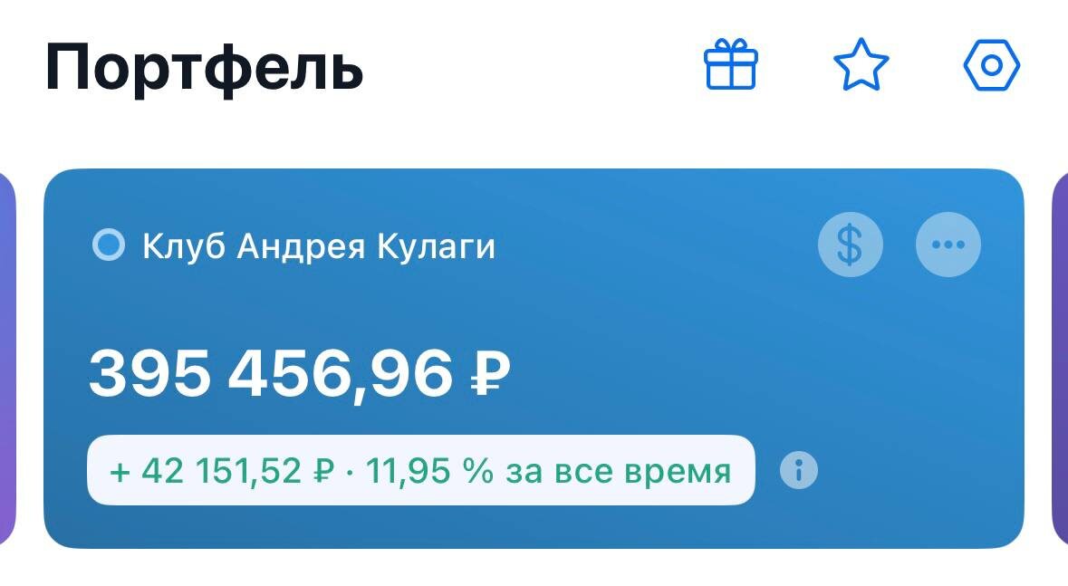 ❗️Итоги клуба - июль 2025 Публикую первый дайджест с регулярным отчетом о результатах наших инвестиций. Это состояние моего портфеля с самого начала клуба при базовых суммах вложений по 1-3 тыс в неделю. ✅ Прошло: 2 года и 10 месяцев ✅ Капитал: 395,5 тыс ✅ Рост стоимости бумаг: +42 тыс ✅ Получено купонами и дивидендами: +23 тыс ✅ Всего 109 выплат (в среднем 3 раза в месяц приходит пассивный доход) ✅ Средняя годовая доходность: +20% Итого пассивный доход больше 65 тысяч рублей! Причем это исключительно пассивные инвестиции, на которые тратятся всего 5 минут в неделю. Никаких сверх выгодных сделок я в клубе не обещаю, у нас чисто стратегия «купил и держи». Прямо сейчас вы можете присоединиться к клубу и получать такие же результаты вместе с нами. Остался 1 день до закрытия дверей! 👉🏻 Вступить в клуб от 1990 рублей #КлубАндреяКулаги