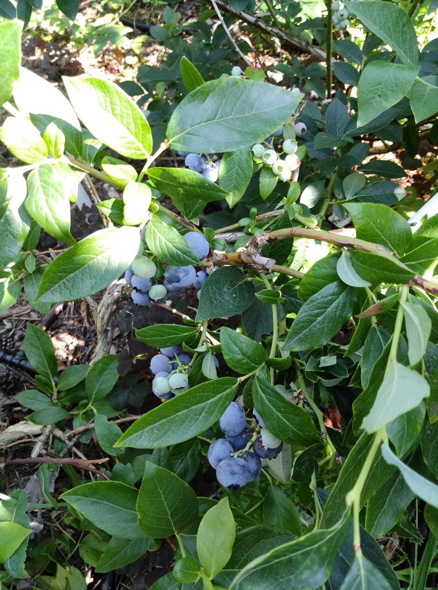 Голубика высокорослая ДЮК (первое плодоношение и созревание урожая конец июля 2025 года) Вид на 28.07.2025 года Посадка данного сорта, так он был заказан 4х летним саженцем в контейнере (С5 — 7,5 литров) в начале июля 2021 года и пришел ближе к концу июля, осуществлялась именно летняя в начале августа 2021 года в одном из видео на канале несколько лет. Сорт очень ранний, вкусный, крупноплодный. Но чтобы ягоды набрали сладость после окрашивания необходимо дать повисеть еще некоторое время на ветке... Дата фотосъемки: 28.07.2025 года 14:39:37 [№1], 14:39:37_1 [№2] МСК