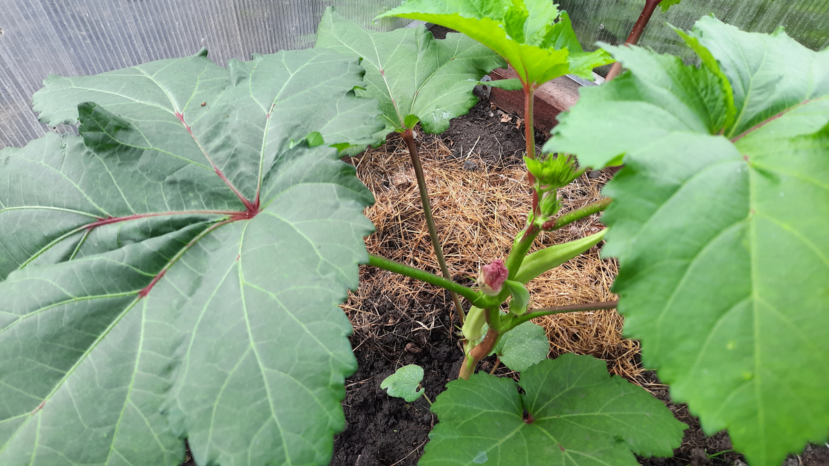 До этой весны я ничего не знала о бамии. Когда мне предложили рассаду, взяла одно растение на пробу. Почитав в интернете о её полезных свойствах и экзотичности, решила вырастить бамию на своём огороде. Хотя средняя полоса России — не Африка, азарт садовода оказался сильнее сомнений, и я с интересом взялась за эксперимент. Тем более, что Антон Павлович Чехов в начале XX века успешно выращивал это экзотическое растение в своём подмосковном имении Мелихово. Майская погода была капризной: то солнце, то дожди, а то и заморозки грозили. Поэтому высадила растение в теплицу, чтобы обеспечить ей комфортные условия. Сначала бамия росла медленно, будто привыкая к новым условиям. Регулярно поливала её, особенно в жару, и рыхлила землю вокруг. Примерно через месяц она начала расти быстрее. Стебель стал мощнее, появились крупные листья, а в конце июля - первые бутоны. Цветы бамии обычно цветут всего несколько часов. Мне пока не удалось запечатлеть всю красоту этих крупных, прекрасных тропически