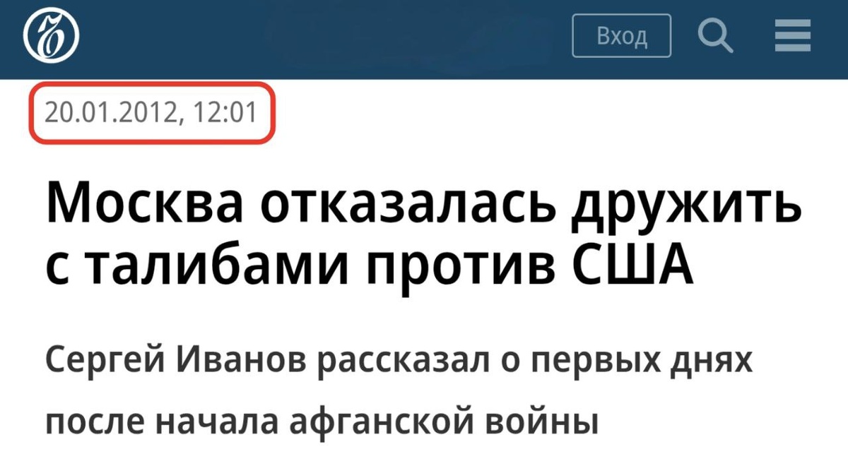 🗣Москва отказалась дружить с талибами против США ~ 20 января 2012 года Бывший министр обороны РФ Сергей Иванов рассказывал, что в 2001 году талибы предложили России объединиться в борьбе против США. Это произошло вскоре после начала американской военной операции в Афганистане. По его словам, предложение поступило напрямую российским пограничникам на таджикско-афганской границе: "Мы ответили им всемирно известным англоязычным жестом F*** off», — признался Иванов в интервью BBC #Россия #Афганистан #США 🏛History_detail. Подписаться