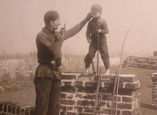 Маленький мальчик надевал плотную шапку, брал в руки ёрш и отправлялся в узкий, извилистый дымоход. Ползком, по кирпичам, в кромешной тьме. Иногда труба ещё не успевала остыть после топки, и ожоги для маленьких работяг были обычным делом. Детей посылали и в действующие трубы из-за спешки или халатности. Работали трубочисты за кусок хлеба. Спали в углу подвала – там же, где хранили инструменты и мешки для сажи.