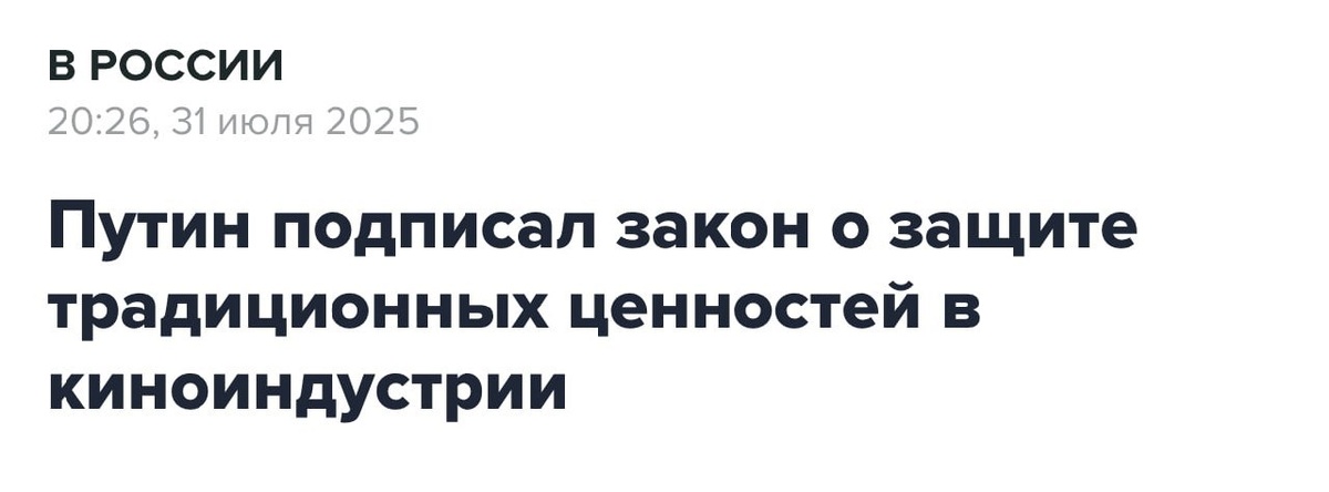 π€’ Π Π ΠΎΡΡΠΈΠΈ Π·Π°ΠΏΡΠ΅ΡΠΈΠ»ΠΈ ΡΠΈΠ»ΡΠΌΡ, Β«Π΄ΠΈΡΠΊΡΠ΅Π΄ΠΈΡΠΈΡΡΡΡΠΈΠ΅ ΡΡΠ°Π΄ΠΈΡΠΈΠΎΠ½Π½ΡΠ΅ ΡΠ΅Π½Π½ΠΎΡΡΠΈΒ» β ΠΡΡΠΈΠ½ ΠΏΠΎΠ΄ΠΏΠΈΡΠ°Π» Π·Π°ΠΊΠΎΠ½