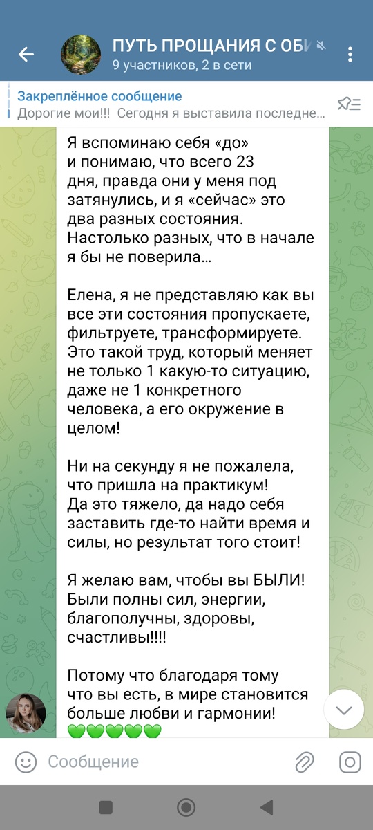 🔥И в итоге получился уникальный продукт -30- дневный интенсив "ПУТЬ ПРОЩАНИЯ С ОБИДОЙ", в котором каждый день вы получаете от меня задание и в течение 10-15 минут в удобное для вас время выполняете эти задания. А затем рассказываете в чате о том, какие изменения происходят у вас внутри.