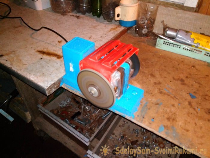 Универсальное и очень доступное точило из подручных материалов. Если у вас сломалась стиральная машинка, то не стоит её сразу выкидывать. В ней много полезных вещей, из которых можно сделать что-нибудь полезное, что пригодиться в хозяйстве. К примеру, точило, о котором пойдет речь, я сделаю из двигателя от старой стиральной машинки. А точило в мастерской вещица весьма нужная и полезная. Для изготовления, на понадобятся: Инструменты: Материалы: И так поехали. Для начала сделаем замеры двигателя, для будущего крепления. Затем при помощи тисков и молотка, изготавливаем вот такую скобу из металлической полосы. На концах будущего крепежа просверливаем два отверстия. На самой дощечке сверлим два отверстия под саму скобу. Отрезок ДВП будет служить в качестве прокладки под двигатель, для гашения вибрации. Устанавливаем двигатель. Фиксируем при помощи скобы, и затягиваем всё это болтами, под шляпки гаек и болтов подлаживаем шайбы. В качестве корпуса у меня будет служить коробочка. В которой дел