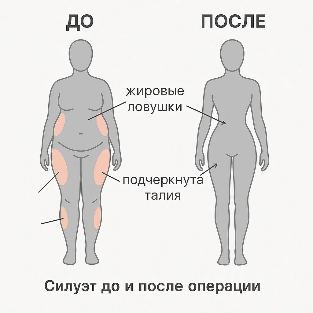 Липосакция удаляет локальные жировые ловушки — те зоны, которые не уходят ни после тренажерного зала, ни после диеты. - Важно!
