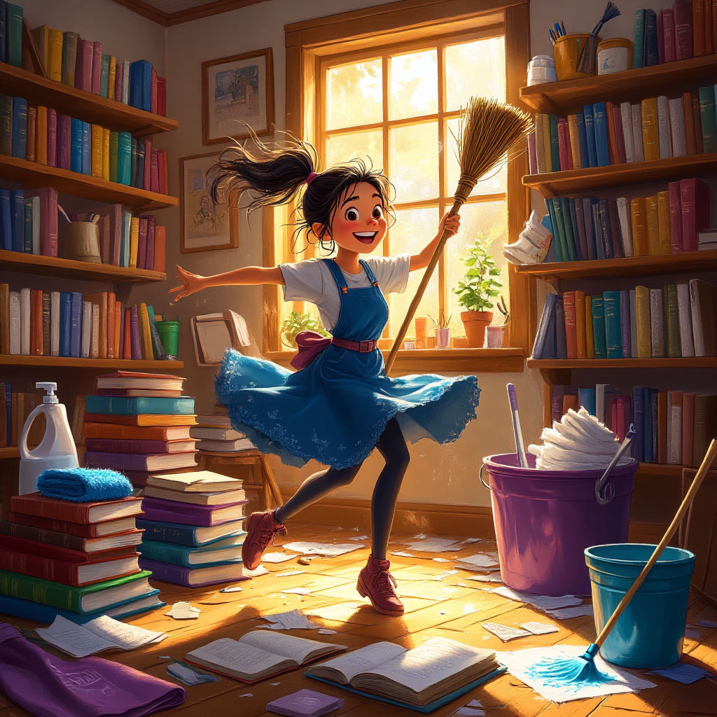 Зинаида Петровна так и сделала. И волшебство развеялось. Книги вернулись на полки, танцующие пылинки растворились в воздухе, а метёлка, напоследок сделав изящный пируэт, снова стала обычной.