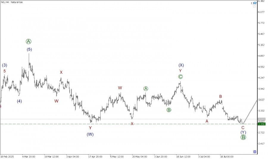 https://basechop.ru/wordpress/?p=52033 Глядя на текущий график, можно заметить, что по Газу может формироваться крупный коррекционный тренд. На текущем графике представлена разметка большой действующей волны (Y), принимающей форму тройного зигзага W-X-Y-XX-Z. На текущем графике мы видим, что действующая волна Z похожа на стандартный зигзаг, внутри которого завершен импульс [A]. Сейчас может формироваться коррекционная подволна [B], которая, судя по всему, принимает форму двойного зигзага (W)-(X)-(Y). Предполагается, что на сегодняшний день завершена только первая действующая волан (W), она приняла форму двойного зигзага W-X-Y. Сейчас в процессе развития может находиться противодействующая волна связка (X), она тоже представляет собой двойной зигзаг W-X-Y. На последнем участке графика может формироваться финальная зигзагообразная волна Y. Внутри волны Y могла подойти к концу коррекционная подволна [B]. Но в приоритете вариант в котором ее развитие продолжается. Есть большая вероятность,