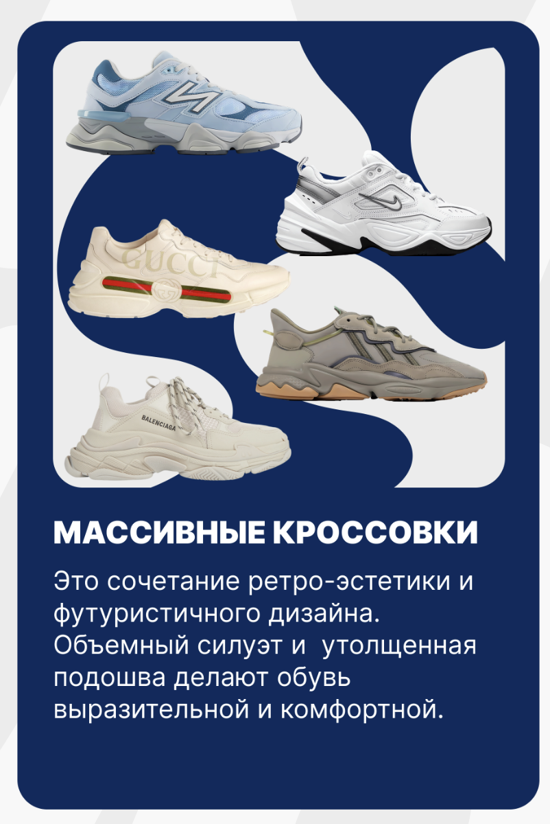 В мире, где каждую неделю выходят десятки новых моделей кроссовок, выбор идеальной пары может превратиться в настоящий квест. Даже для искушенных сникерхедов этот процесс порой занимает слишком много времени. Мы решили эту проблему, создав уникальный инструмент, который мы в шутку называем "Tinder для кроссовок". Представьте: вы отвечаете на несколько простых вопросов о вашем бюджете, предпочтениях в цвете и размере, а затем начинается самое интересное. Вам предлагается серия карточек с различными стилями кроссовок. Ваша задача — просто свайпать, выбирая то, что вам по душе. В результате вы получаете персональную подборку из 10-15 пар, идеально соответствующих вашим вкусам. Чтобы вы могли лучше понять, как это работает, мы подготовили обзор стилей, которые вы встретите в нашем "сникер-тиндере". Этот стиль, также известный как "chunky sneakers", характеризуется массивной, порой даже громоздкой подошвой и многослойным верхом. Вдохновленные модой 90-х, эти кроссовки сегодня вновь на пике