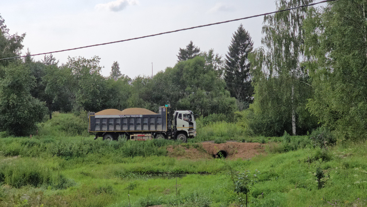 Три дня мы ждали приезда новых конкурсов, и вот они доехали! 32 куба кремниевого отсева для засыпки дорожек. И на участок его никак не завезти, высыпать можно только за забором. Теперь нам развлечений хватит надолго. Дождь собрался и пошёл внезапно, никто его особо не ждал, шёл он минут двадцать, но очень сильный. А кошка Морошка в это время сторожила мышей за забором и ждала нашу доставку песочницы. Пришлось кошку нести сушить. Что-то засыпать отсевом мы начали практически сразу. Решили сначала потренироваться на площадке перед совешней. Видео можно посмотреть без рекламы в Дзен Премиум И по ссылке бесплатно на Рутубе